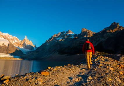 Viaja desde El Calafate hasta El Chalten (220 km) atravesando la estepa patagonica con vistas al Lago Viedma y el majestuoso Cerro Fitz Roy. En El Chalten podras elegir entre diferentes senderos de trekking o simplemente disfrutar del pueblo.